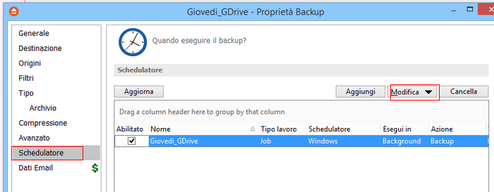 در این مرحله ، دوباره با دکمه Properties ، فقط باید نسخه پشتیبان را به ترتیب تغییر دهیم: [19659002]